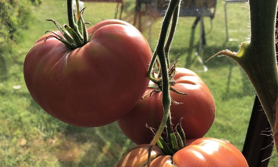 Vi säljer främst körsbärstomater av sorter som vi valt ut på grund av dess goda smak, samt grönskål och svartkål. Provsmakning ingår när du plockar tomater! Allt är såklart odlat helt utan bekämpningsmedel eller konstgödsel.